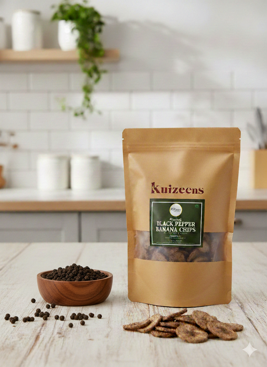 Bold, spicy, and perfectly crunchy, Black Pepper Banana Chips are a flavorful upgrade to the classic banana snack. Made from thinly sliced raw bananas and seasoned with freshly ground black pepper and a hint of salt, these chips offer a warm, peppery kick with every bite.