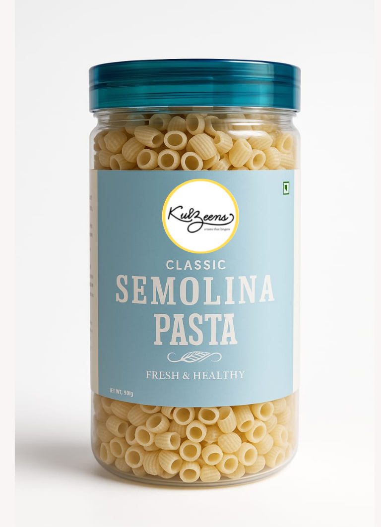 Semolina Pasta is a traditional pasta made from semolina flour, which is derived from durum wheat. It has a rich golden color, a firm, slightly gritty texture, and a neutral, subtly wheaty flavor that makes it perfect for holding sauces.