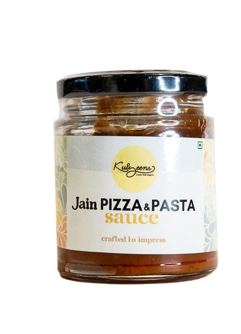 FRIDGE SAUCE. Jain Pizza & Pasta Sauce is a rich, tangy, and herb-infused tomato-based sauce crafted without onion, garlic, or root vegetables, adhering to Jain dietary guidelines. Despite these exclusions, it remains flavorful, vibrant, and aromatic, making it ideal for pizzas, pastas, and fusion dishes.