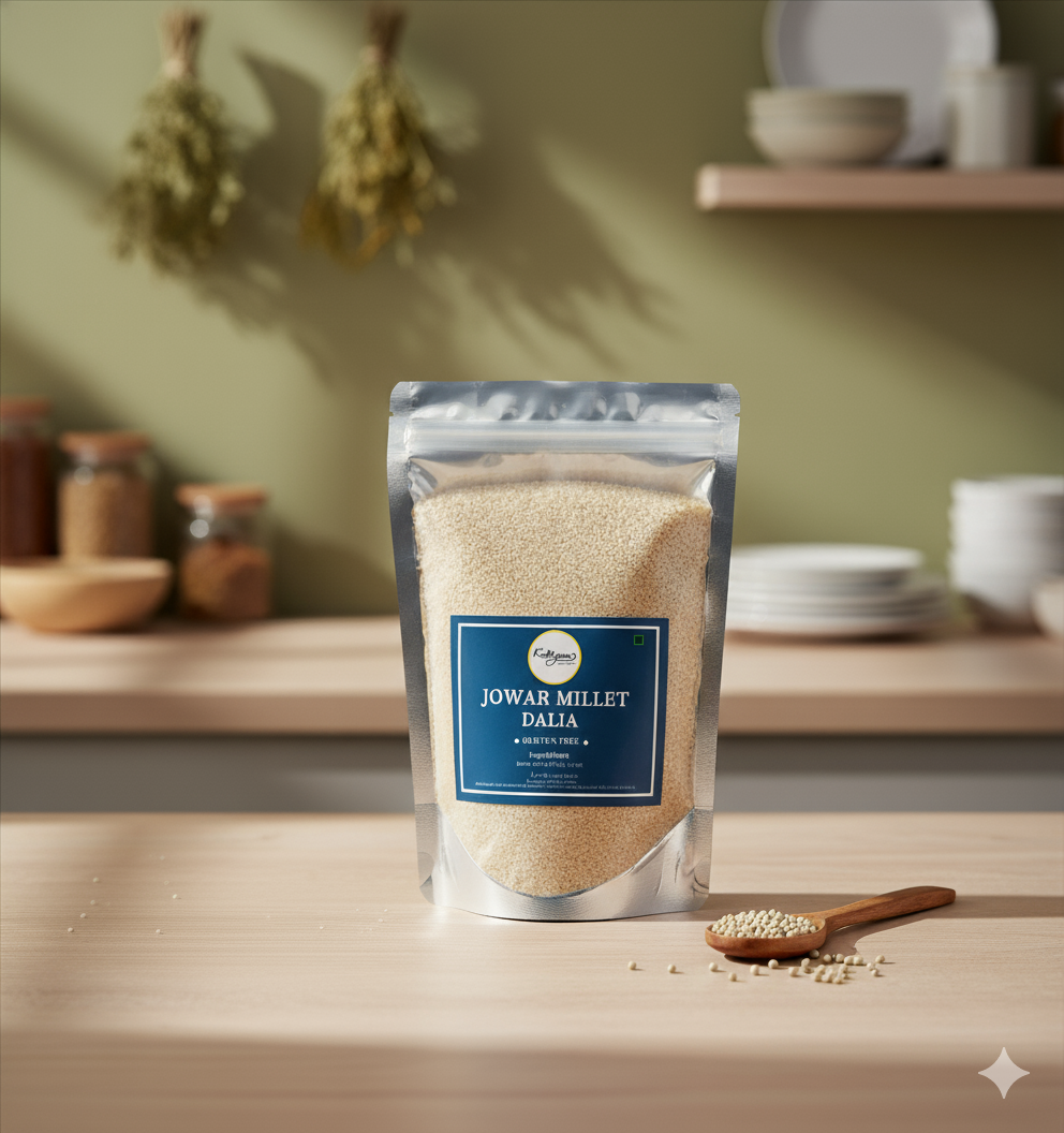 Jowar Dalia is a wholesome, coarsely ground porridge made from sorghum (jowar). Naturally gluten-free and rich in fiber, protein, iron, and essential minerals, it helps improve digestion, manage weight, and provide long-lasting energy. Light yet filling, jowar dalia is a perfect choice for a nutritious breakfast, khichdi, or upma. Suitable for diabetics and heart-healthy diets, it offers a tasty and traditional way to include millets in daily meals.
