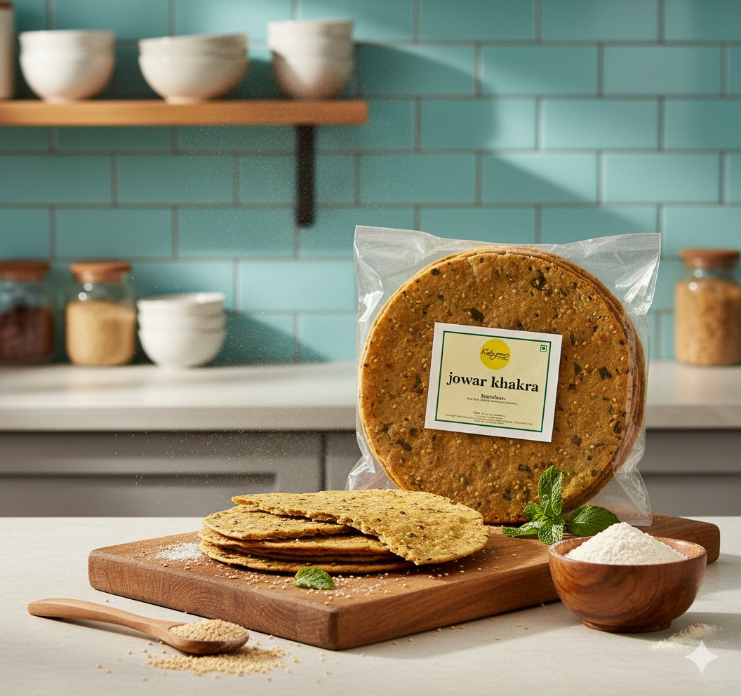 Light, crispy, and packed with ancient grain goodness, Jowar Khakhra is a wholesome snack made from sorghum (jowar) flour and mild spices, then roasted to perfection. Naturally gluten-free and rich in fiber, this traditional Gujarati-style crisp offers a healthy twist on your everyday munchies.