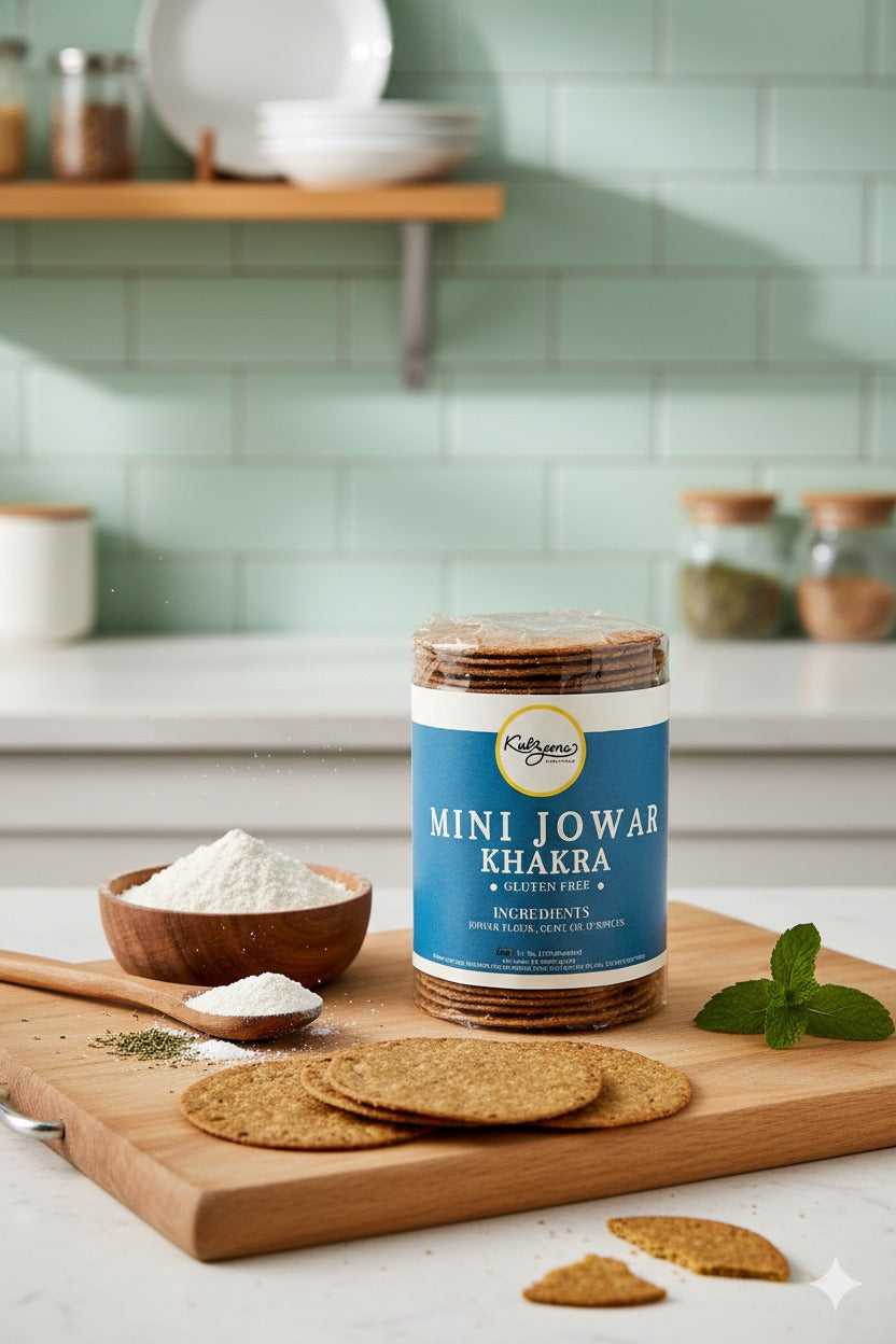 Light, crunchy, and naturally gluten-free, Mini Jowar Khakhra is made from nutrient-rich sorghum flour and gentle spices. A wholesome snack packed with fiber and goodness—perfect for tea-time or on-the-go munching.